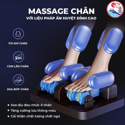 Massage chân chuyên sâu kết hợp giữa túi khí chân và bi lăn bàn chân hỗ trợ giải tỏa căng thẳng, nhức mỏi từ chân tới thư giãn toàn bộ cơ thể.